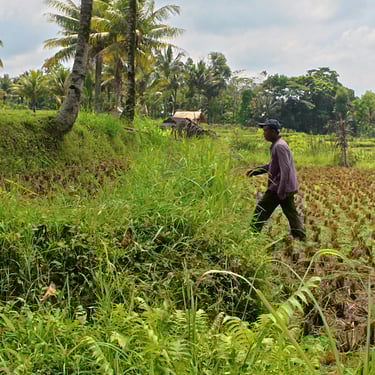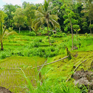 À Tetebatu, les paysages sont dominés par des rizières en terrasses spectaculaires, des plantations de café, de cacao et de tabac. L'atmosphère y est sereine, rythmée par le travail agricole traditionnel et le son des cascades environnantes.