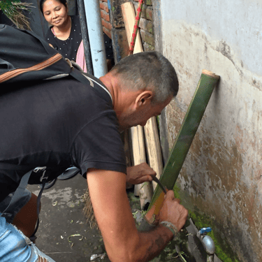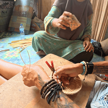 Visite d'une petite fabrique de paniers et de sacs en bambou:
